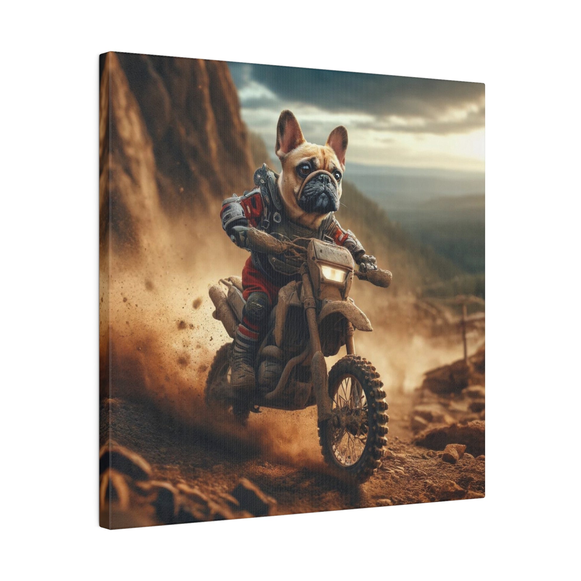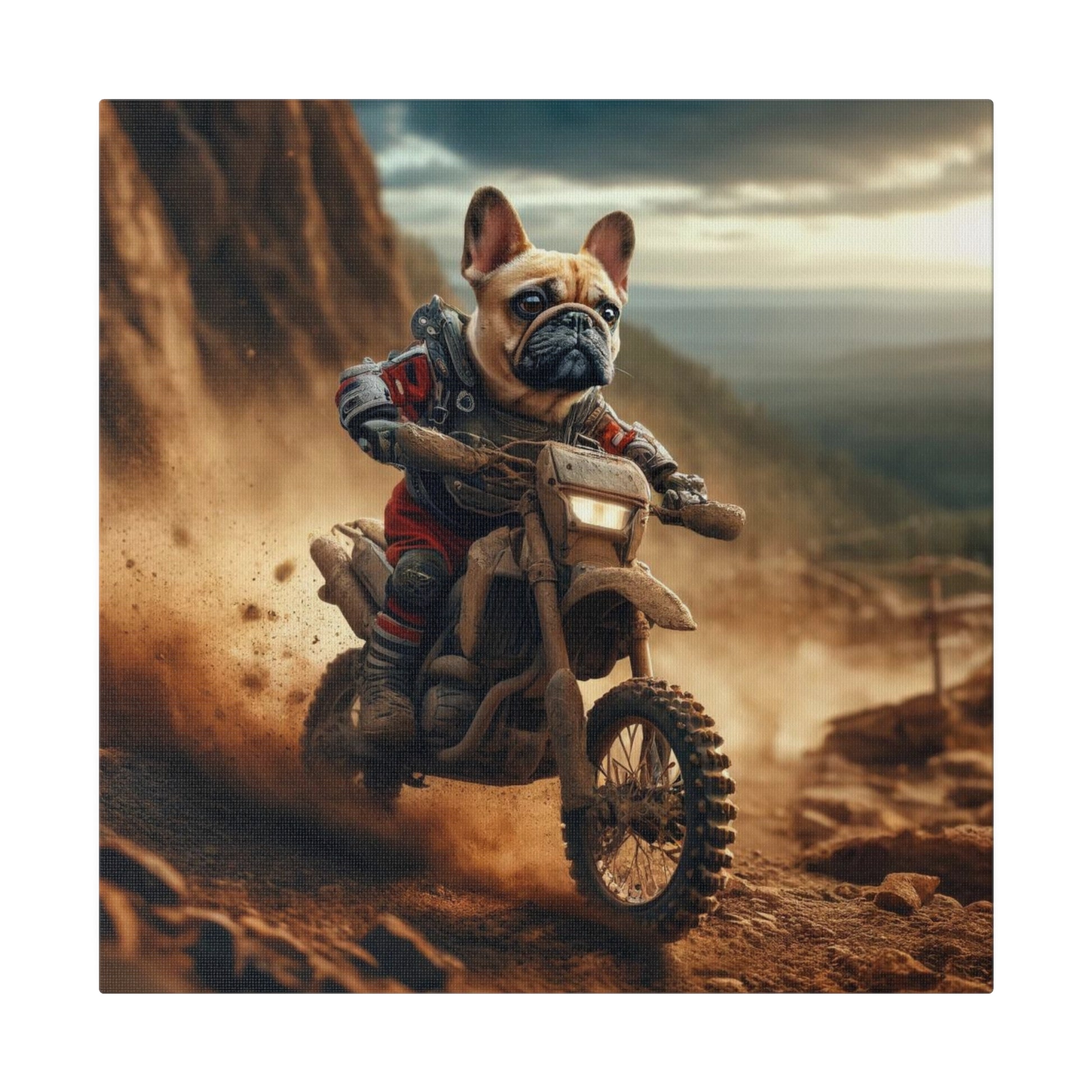 Frenchie Dirt Biker-Matte Canvas, Stretched, 14x14