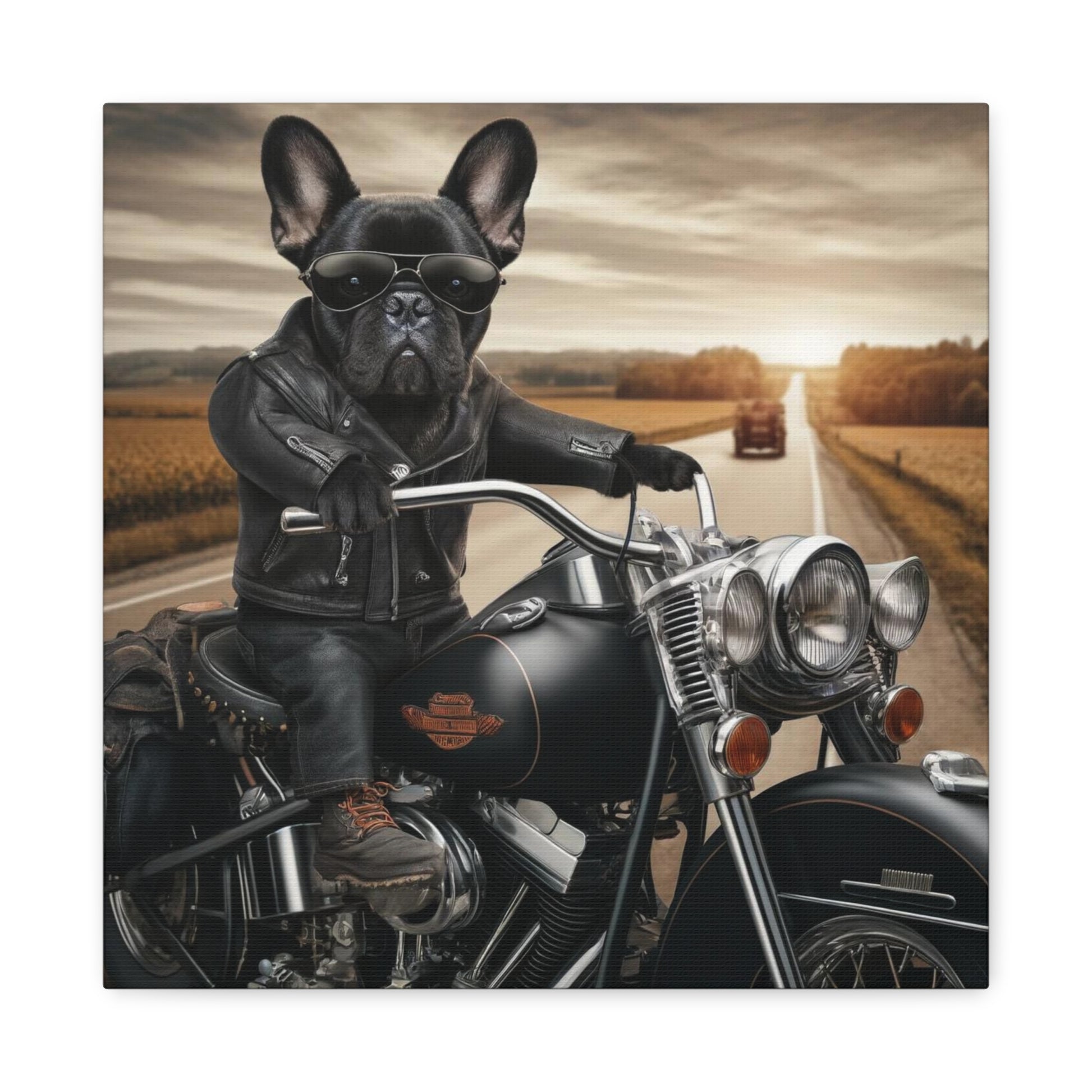 Biker Frenchie-Matte Canvas, Stretched, 14x14