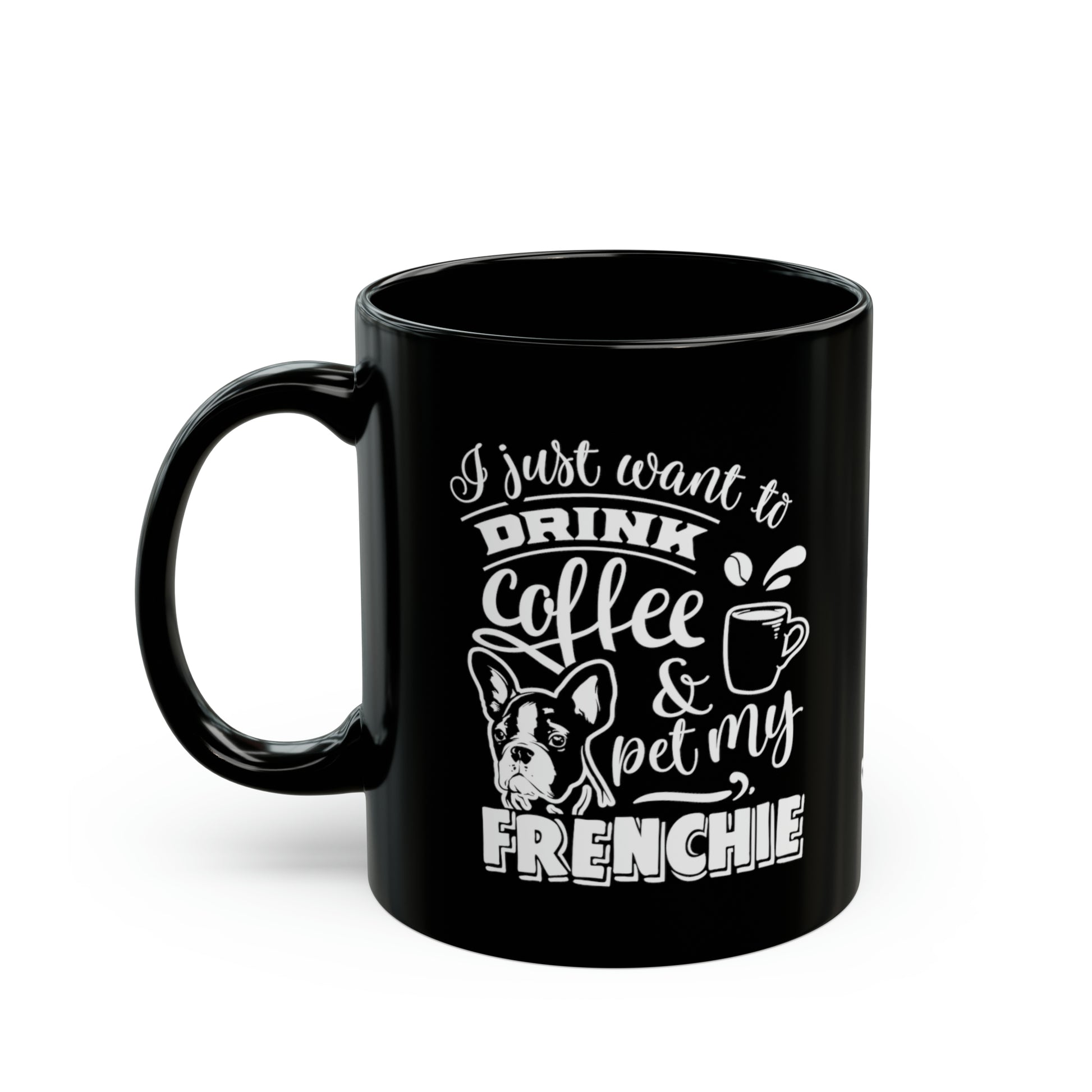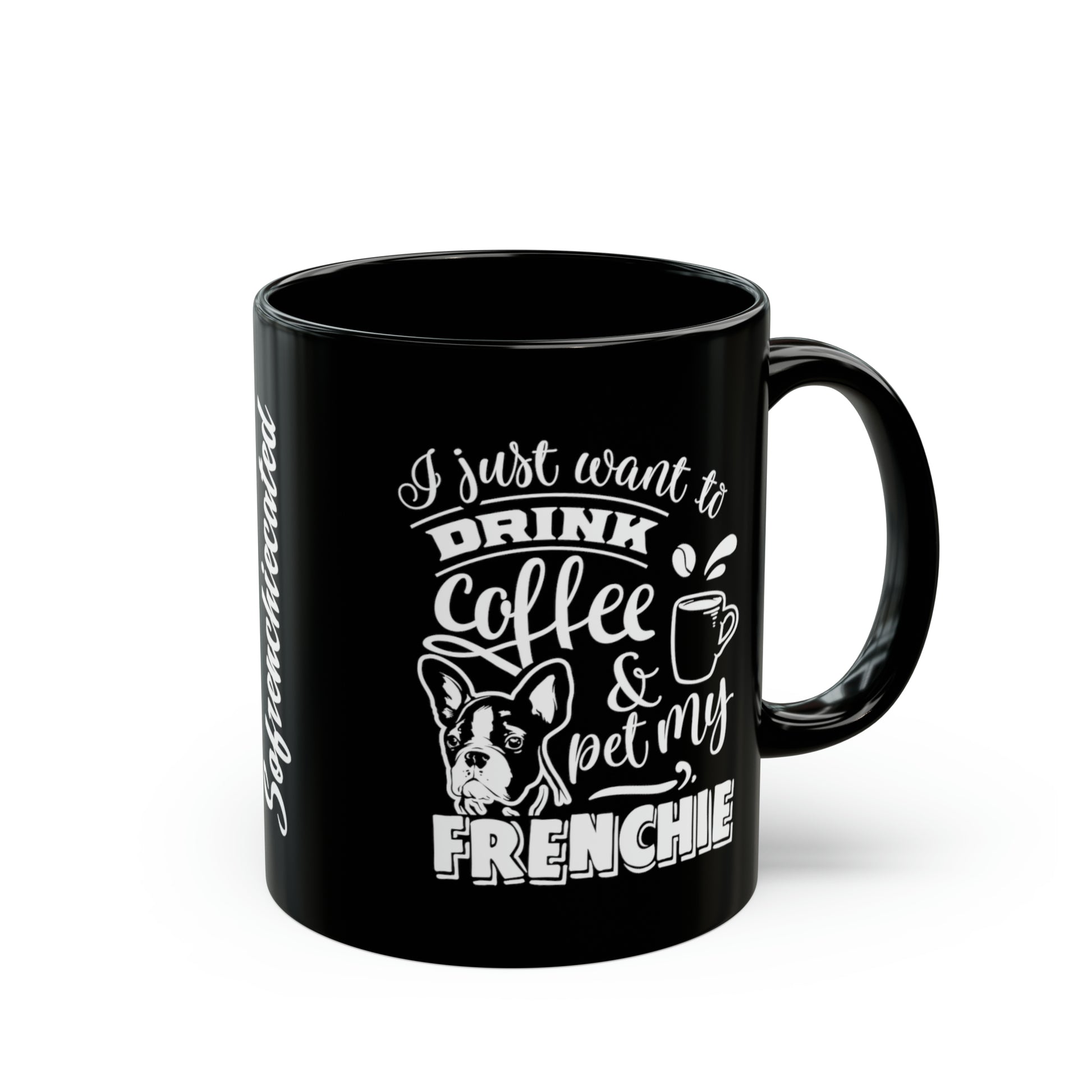 I Just Want To Drink Coffee and Pet My Frenchie-Black Mug (11oz)